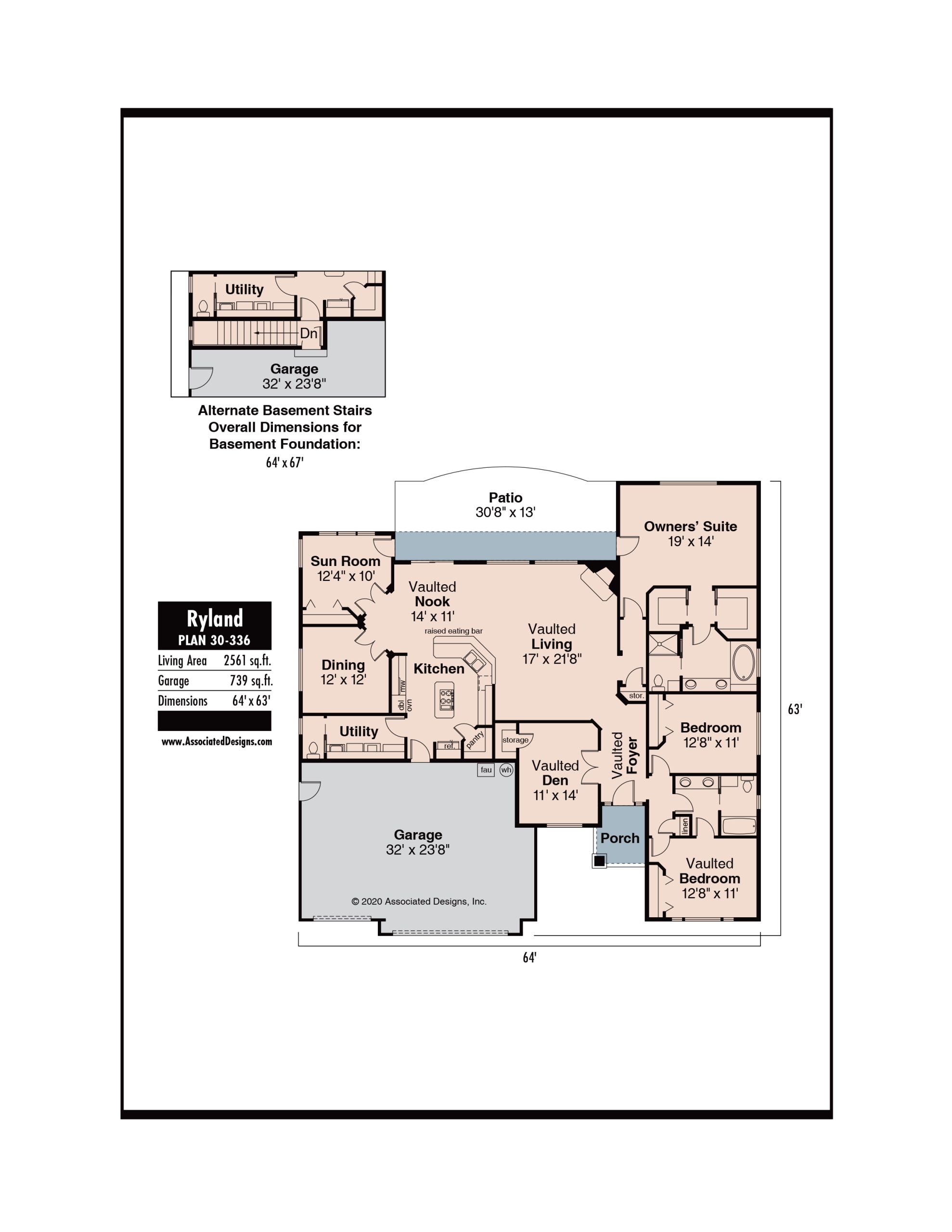 The Ryland 30-336 is created by Associated Designs, Inc.’s talented team of residential home designers. To learn more about this design visit www.AssociatedDesigns.com.