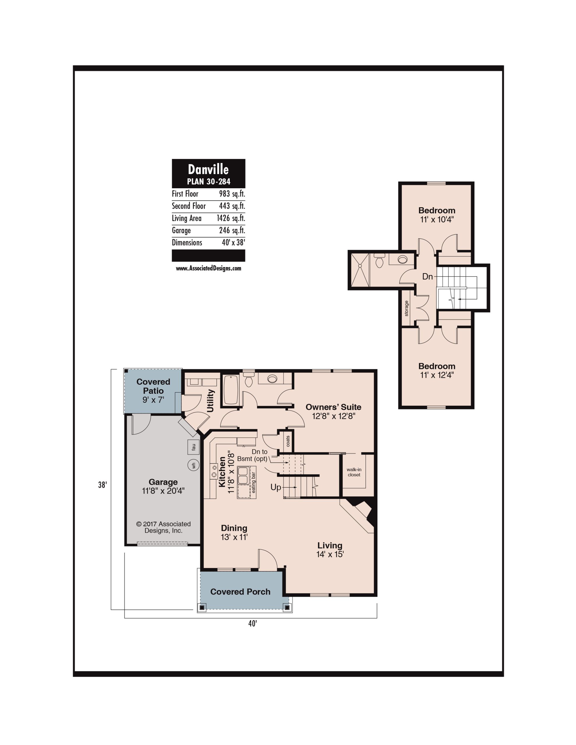 The Danville 30-284 is created by Associated Designs, Inc.’s talented team of residential home designers. To learn more about this design visit www.AssociatedDesigns.com.
