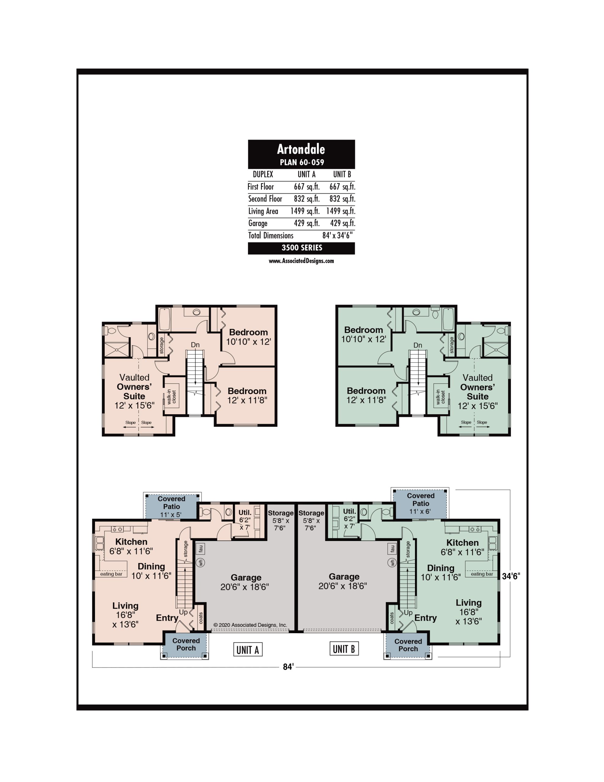 The Artondale is a beautifully balanced, two‑story Craftsman duplex designed to deliver style, efficiency, and privacy in equal measure. With a total of 2,998 square feet of living space (approximately 1,499 sq ft per side), this plan offers a compelling residential solution, ideal for investors, multi‑family living, or extended families who value both independence and community.