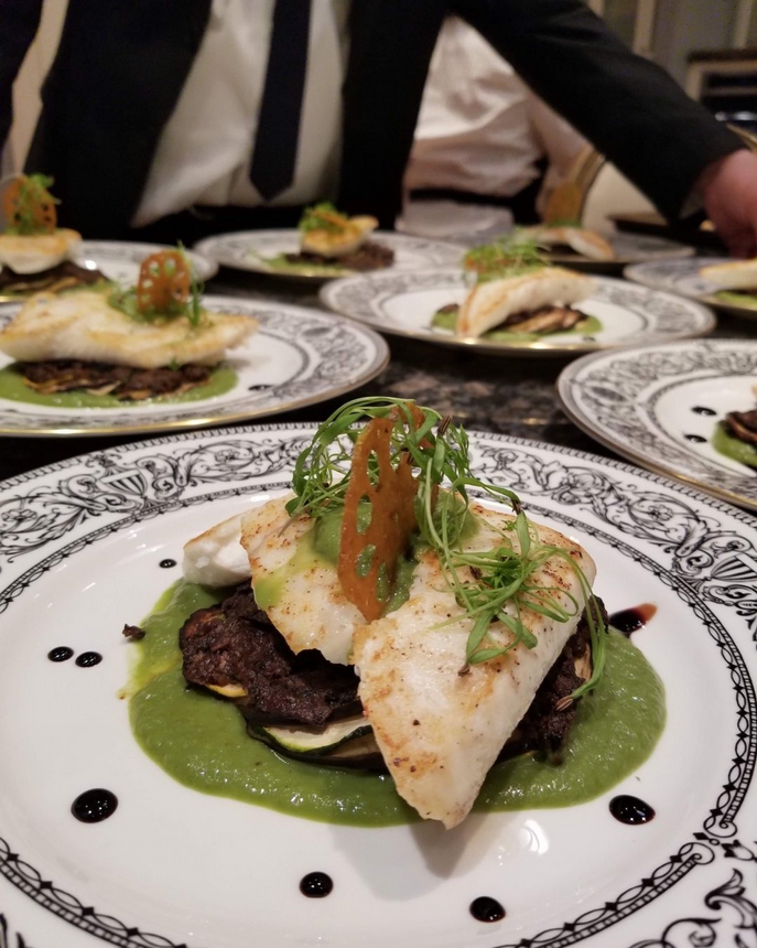 Each course is designed to harmonize seasonal richness with coastal vibrance. Guests can expect dishes such as truffle-scented butternut squash bisque with mascarpone crema, roasted local snapper with fennel and citrus beurre blanc, and dry-aged beef tenderloin served with black garlic demi-glace and rosemary sweet potato purée.