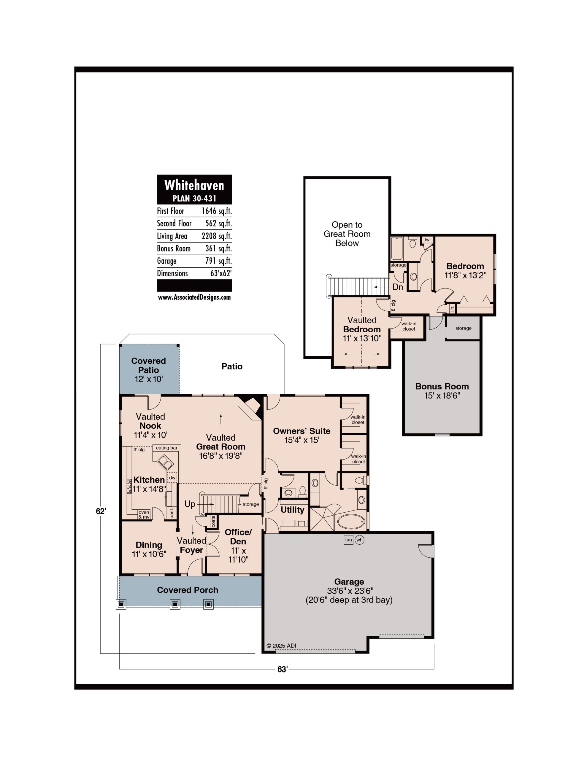 The Whitehaven 30-431 is created by Associated Designs, Inc.’s talented team of residential home designers. To learn more about this design visit www.AssociatedDesigns.com.