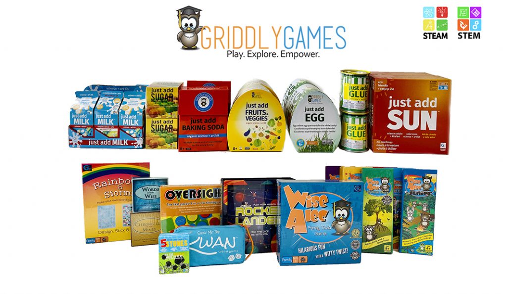 The SMArt gifts from Griddly Games include its families of Just Add branded S.T.E.A.M. (Science Technology Engineering Art Math) kits and its S.T.E.M. board games.
