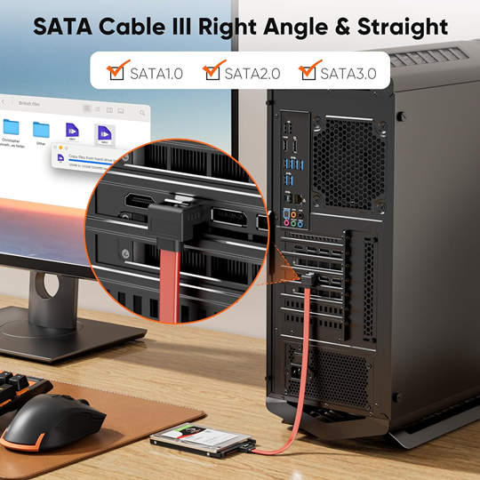- Right Angle SATA Cable: This is arguably the most important innovation for modern system building. Available in multiple orientations (left, right, up, down), a right-angle connector allows the cable to lie flush against the drive or motherboard. This eliminates harmful lateral strain on the port, saves valuable space in compact cases and multi-drive bays, and dramatically improves airflow—a critical factor for cooling NVMe drives and GPUs adjacent to SATA ports. Specifying the correct angle is essential for a clean Laptop SATA Cable installation or for SATA cables for SSD placements near large CPU coolers.