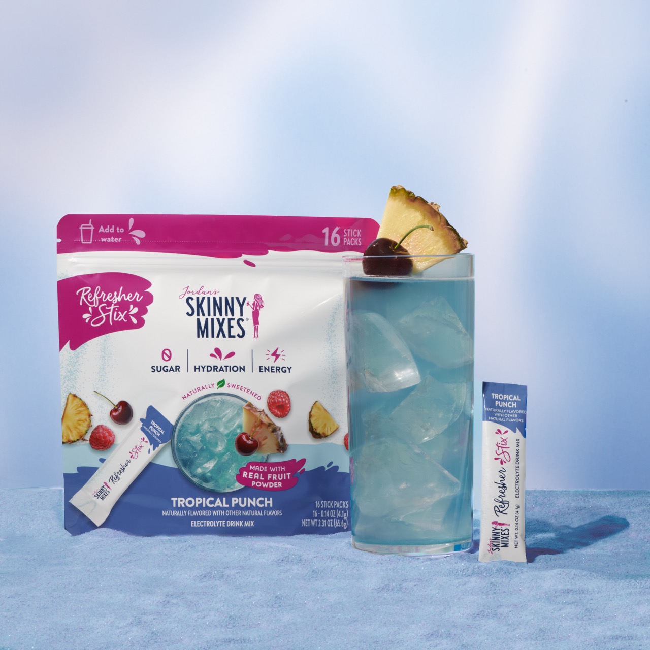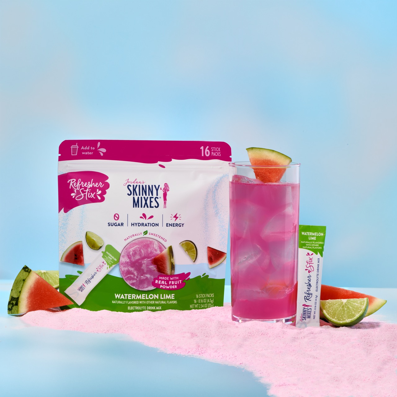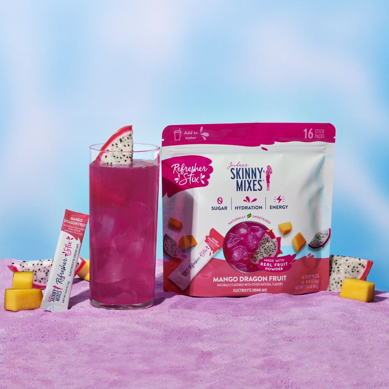 Jordan’s Skinny Mixes Refresher Stix are crafted to meet the growing demand for functional beverages that go beyond basic hydration. Available in Mango Dragon Fruit, Tropical Punch, and Watermelon Lime, each stick features real fruit inclusions, 0g of sugar, and just 10-15 calories. With 50mg of clean caffeine from green tea extract and 385mg of electrolytes from real sea salt and potassium, they deliver a refreshing boost that supports both hydration and energy.