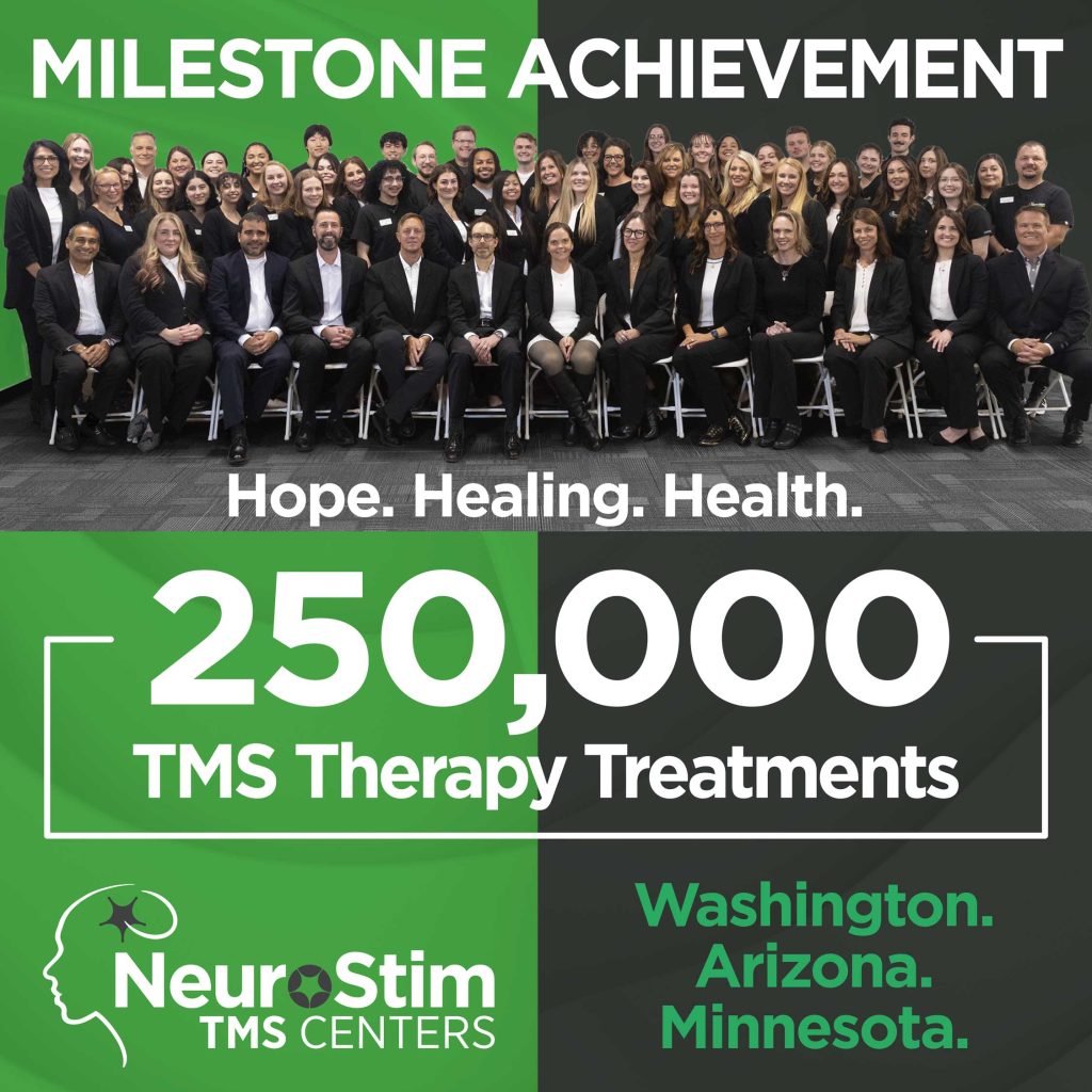 NeuroStim TMS, a leading national provider of Transcranial Magnetic Stimulation (TMS) Therapy, is proud to announce a major milestone: 250,000 TMS Treatments delivered. This achievement comes as the company expands into the state of Minnesota with the opening of its new clinic in Bloomington and plans to open a second location in Minneapolis in November.