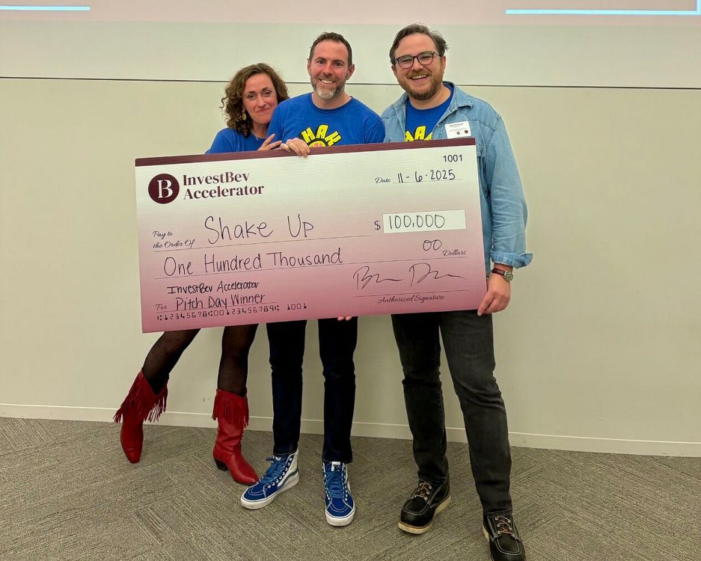 “It feels surreal to share that Shake Up Cocktails was chosen as the pitch contest winner at the InvestBev Accelerator program,” said Dan Fahrner. “We joined the cohort to pressure test our message, go-to-market strategy, investment pitch, and market fit through about eight weeks of intense workshops. It was intense. I actually nearly fainted when they announced our name!”