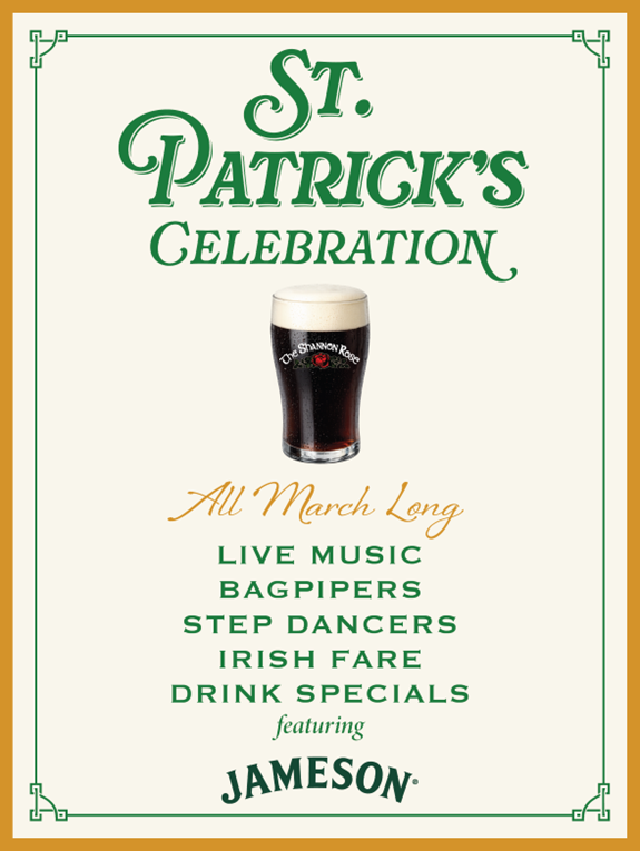 Shannon Rose Irish Pubs Celebrate St. Patrick’s Month with “Foods & Drinks of Ireland” Menu, Live Music, Family Brunches and Fundraisers