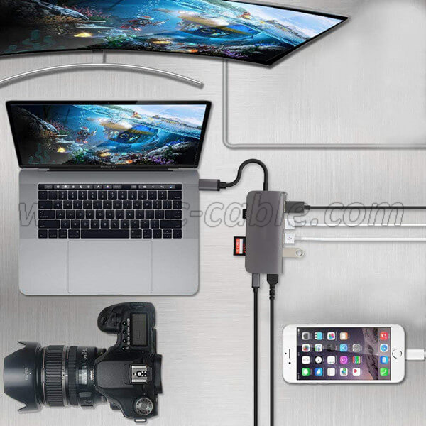 The fast charging power of the PD interface can reach 100W and supports 5V-20V fast charging, which can directly meet the needs of fast charging for notebooks. The three USB3.0 transmission ports can be directly connected to devices such as mouse, keyboard, U disk or mobile hard disk without repeated plugging and unplugging.