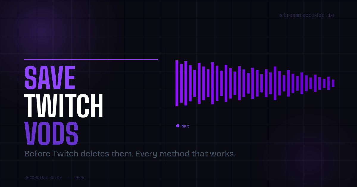 Twitch automatically expires VODs after 14 to 60 days and mutes replays flagged by copyright — StreamRecorder.io breaks down every recording method that actually works before the content disappears.