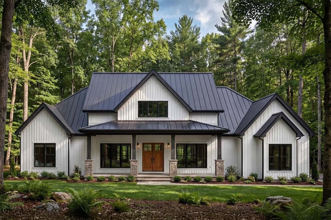Sleek modern homes are softening. Rather than stark minimalism, 2026 modern designs emphasize warmth and approachability. Flat or low-slope roofs, expansive glass, and strong horizontal lines remain, but they’re paired with textured materials and earth-toned exteriors. This “warm modern” style appeals to homeowners who want contemporary architecture without sacrificing comfort or character.