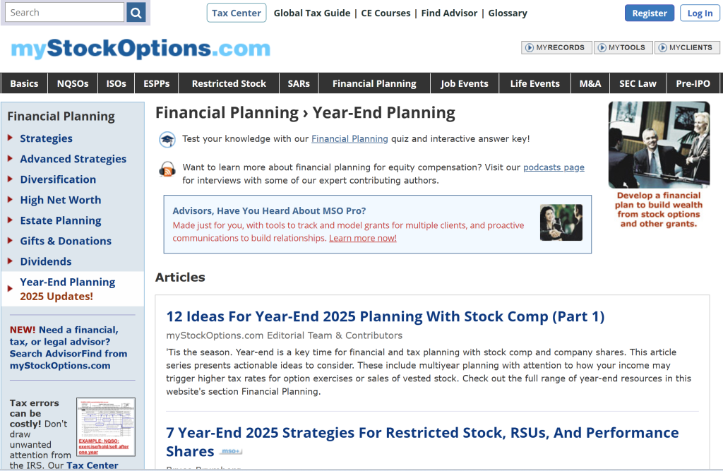 To help, myStockOptions.com has updated its education and guidance on the major issues, decisions, and innovative financial-planning strategies for the end of 2025 and the start of 2026. This content is available in the website’s section Financial Planning: Year-End.